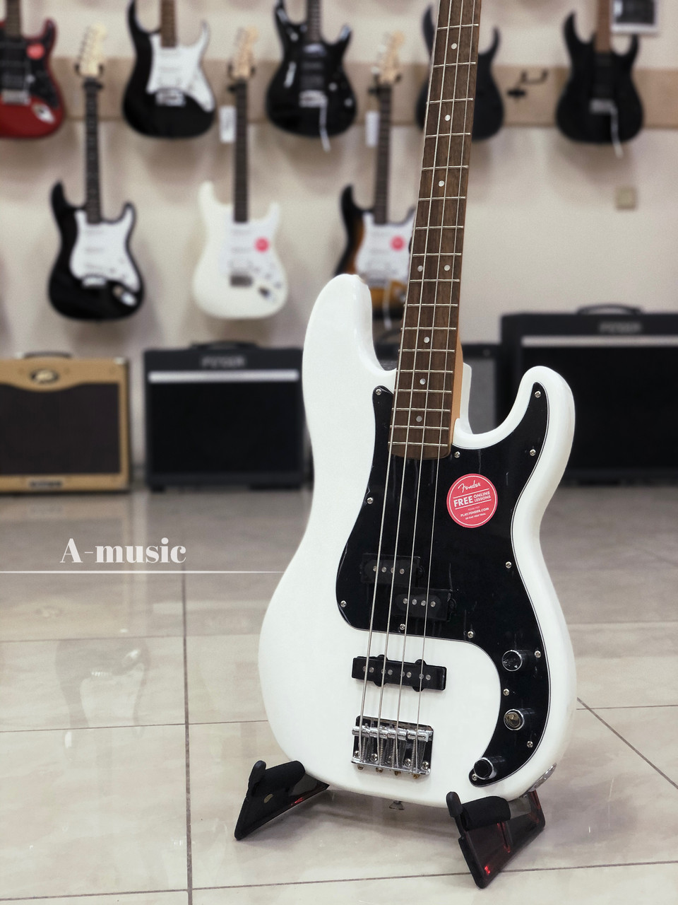 Це Standard Split Single-Coil Precision Bass у середній позиції та Standard Single-Coil Jazz Bass у бриджу. Настроювання звуку відбувається окремими для кожного зі звукознімачів регуляторами гучності й одним регулятором тембру. Бридж 4-Saddle Standard. Бас-гітари цієї серії випускаються в трьох варіантах колірного виконання. Представлена модель елегантного білого кольору з контрастним чорним тришаровим пікгардом і хромованою фурнітурою. На бас-гітарі встановлені струни Fender USA Bass 7250ML, товщина.045 —.100.